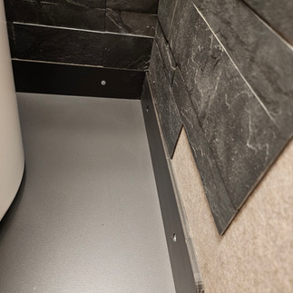 - Rundum-Abdeckung der Clesana C1 mit Gefälle zur Dusche hin, damit Wasser ordnungsgemäß abläuft, ohne dass die Toilette im Gefälle steht. Es werden zwei Plattformen erstellt: