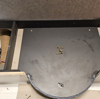 Die CAD-Zeichnung für die Trägerplatte des Sockels wurde erstellt. Da der Sockel ca. 20 % in den Leerraum hineinragt, haben wir entschieden, eine Trägerplatte aus HPL herzustellen. Dies wäre nicht zwingend erforderlich, da der Clesana-Sockel selbst eine robuste Struktur hat. Allerdings könnte man in diesem Fall die vordere Sockelschraube nicht montieren. Da unser Kunde jedoch eine perfekte Nachrüstung wünschte, haben wir die Trägerplatte gefertigt.